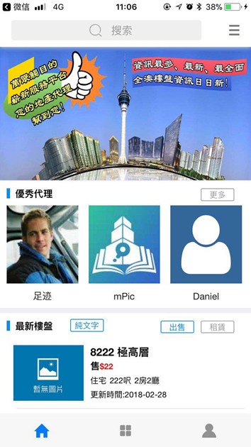關於對象用戶 「澳門房地產資訊共享社區1.0」令廣大市民可享更優質的代理服務及接觸更全面資訊 同時透過資訊科技提升行業專業水平,優化地產代理服務及資訊存取渠道。 關於資訊共享 地產從業人員各自手上掌握著一些房地產資訊,如樓盤信息、行業知識、市場消息等,透過打造一個尊重地產行規、重視專業發展、滿足公眾知情權同時保護個人資料的服務平台、由地產從業人員將這些資訊共享,一個全面的、實時的全澳 可售及可租樓盤資料庫便可建立,免費供所有成員索取。 大多數互聯網資訊處理的方式,僅僅將傳統紙類資訊電子化,只滿足單一「搜索」功能,並未進一步達至個性化。我們則利用移動資訊技術,開發一些如「搜索、跟蹤、留意及推送通知」四合一功能,來滿足用戶需求。 「共享社區」還支援其他能為中介提升競爭力的功能,例如可參與「地產專屬千人交流論壇」、共享「樓盤圖則」及「兇宅」資訊、展示「最新樓盤」及「求盤池」等等,而且全部免費。