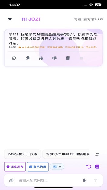 赛博交子是新一代AI投资社交平台,搭载14套以上的专业智能体分析工具,提供全方位智能财经分析服务。平台涵盖智能体网络搜索能力、财经类消息整合分析能力、网络多源财经评估能力。内置AI助手可深度解析财报、研报等文档,生成个性化分析与解析。同时打造投资社交社区,让投资者分享策略、交流经验。通过多数据源整合和实时流式响应技术,为投资者提供专业、及时、智能的投资决策支持。